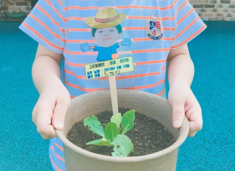 6년 전에 이렇게 일기를 써 놓았다. 글과 사진을 보니 그때의 내 기분이 떠오른다. 그 당시 아이가 다니던 유치원에서는 홈페이지를 운영해서 학부모들은 모두 다 같이 갤러리에 올라온 사진들을 볼 수 있었다. 얼굴만 다르고 똑같은 옷과 비슷한 표정, 그리고 같은 포즈로 한 명씩 찍은 갤러리에 유난히 눈에 띄는 사진이 한 컷 있다. 화분과 나란히 찍고 싶었는지 개구리처럼 쪼그려 앉아서 시선을 모으는 사진. 혹시나 싶었는데, 역시나 우리 집 2호다. 하아.. 다들 이렇게 나와 같은 수순으로 우리 아이 사진을 보겠지. 그리곤 자연스럽게 누구인지 궁금해져서 이름표를 살피게 될 것이고, 그 밑에 적힌 배추의 이름도 무심결에 보게 될 거다. 별 기대 안 하고 읽은 배추이름에 한 번 웃고는 스치듯 드는 생각은 다들 똑같으리라.