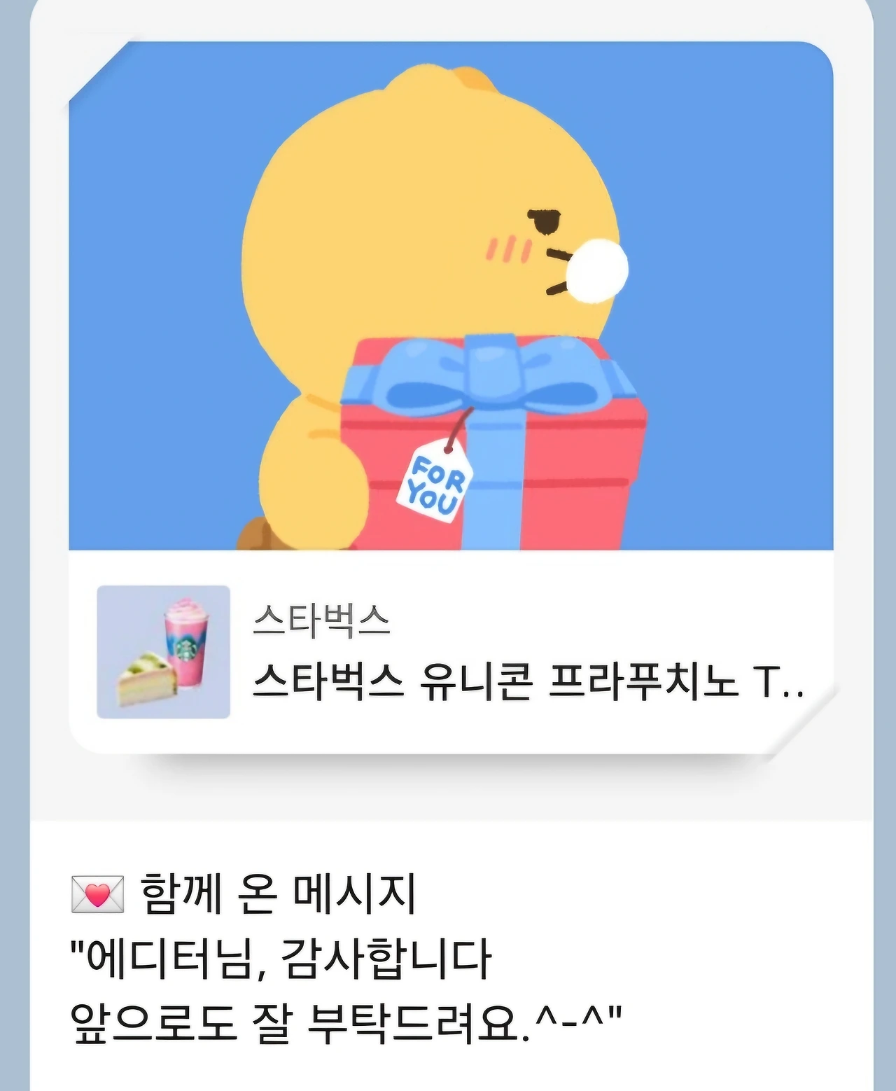 그래서 어느 날, 조용히 커피 한 잔을 선물로 보냈다.