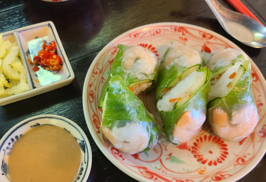 친구나 지인이랑 함께 할 때면 주로 스프링 롤을 시키곤 하는데 상추와 채 썬 당근, 숙주 등 다른 야채들을 넣어 쌈을 싸 먹으면 입안 가득 바삭 고소한 행복감이 입안에 가득 찬다. 거기에 쌀국수 국물을 한입 더해주면... 생각만 해도 침이 가득 고인다.