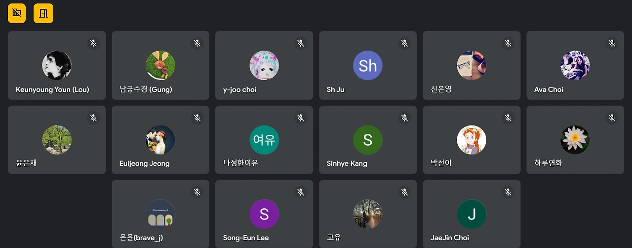 새벽 5시에 meet로 만나 각자의 할 일 (독서 혹은 글쓰기)을 하고 7시에 본 캐릭터(엄마)로 돌아가 아이를 챙기고 나서 약속이나 한 듯이 단체채팅창에 모여 일상을 공유한다. 도서관을 가고, 회사를 가고, 여행을 가고, 책을 읽으며 일어난 화가 난 일, 속상한 일, 좋았던 음식이나 책 등을 이야기 나누며 정보를 공유하고, 위로와 응원을 아끼지 않는다. 혼자 핸드폰을 붙잡고 우리끼리만 아는 농담에 눈물이 쏙 빠지게 웃거나, 개념 없는 커피숍 직원이나 남편일로 열받을 때는 내 일인 것 마냥 한숨을 푹푹 쉬며 엄지손가락을 평소보다 더 빠르게 움직인다. 쌍자음이 많이 들어가야 하고, 수많은 이모티콘도 넣어야 하니 말이다. 핸드폰 화면 속으로 들어갈 듯 초 집중하는 모습에 가족들은 고개를 절레절레 젓기는 하지만, 부정적인 반응을 보이지는 않는다. 반복되는 일상 속에서 무기력하고 예민하게만 굴었던 사람이 무언가에 빠져 열정 에너지가 생긴 게 그들의 눈에도 좋아 보이는 모양이다.