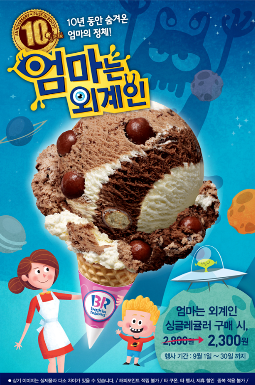 "뭐 하고 있어, 얼른 베스킨라빈스에서 파는 아이스크림 이름이라고 부연설명해야지."