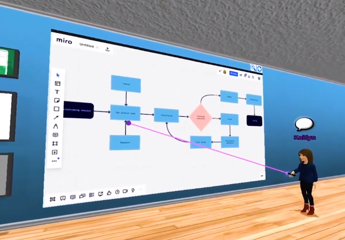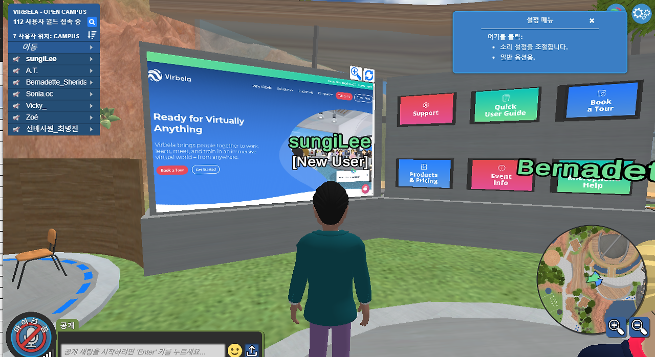 플랫폼 내에서 인터넷 접속이 가능하고 프레젠테이션 도구를 사용해 발표할 수 있음 또한 거리에 따른 공간감 있는 음성 서비스 제공하여 보다 현실적인 음성으로 교육, 업무 진행이 가능함