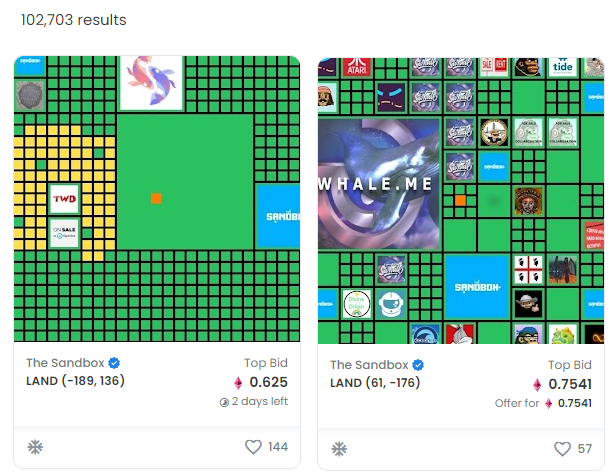 더 샌드박스는 랜드를 거래할 수 있다. 이 랜드를 소유하게 되면 자신만의 구역을 얻게 되는 것인데 어떤 공간으로 만들고 사용할 지는 온전히 소유자의 선택에 달려있다. NFT( Non Fongible Token)를 활용해서 랜드의 소유권을 얻는 방식인데 그 1X1 랜드(최소크기)의 가격은 무려 1900만원에 가까운 금액에 판매하고 있다. 쉽게 생각해서 게임에 존재하는 맵을 사용지들에게 소유권을 주겠다는 것으로 무엇을 세우고 어떻게 배치하고 게임요소를 집어넣고 등 100% 소유주의 뜻으로 제작이 가능하다.