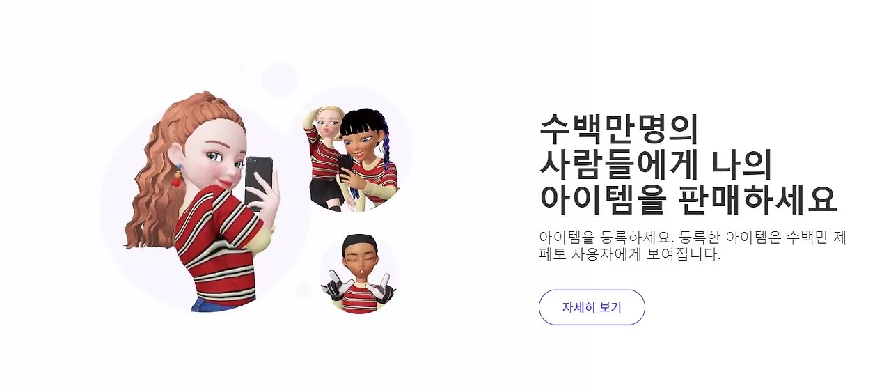 2018년 8월에 출시하여 글로벌적인 인기를 얻고 있는 제페토는 국내 메타버스의 선두두자이다. 해외에 로블록스가 있다면 국내에는 제페토가 있다. 초기에는 네이버 자회사인 SNOW(카메라 App으로 선풍적인 인기를 끌었던 기업)에서 서비스를 시작했지만 현재는 분사하여 '네이버 z'에서 서비스를 진행하고 있다.