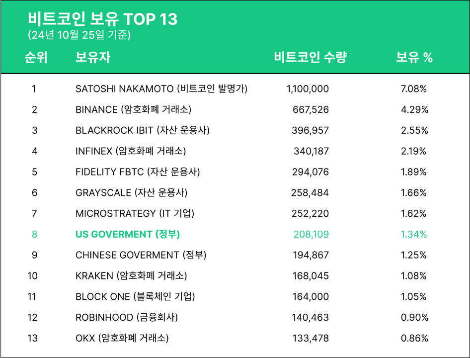 비트코인의 총발행량은 2,100만 개로 그 이상 발행할 수 없게 설계됐다. 중요한 것은 비트코인의 총발행량의 1% 이상을 미국 정부가 보유하고 있다는 점이다.