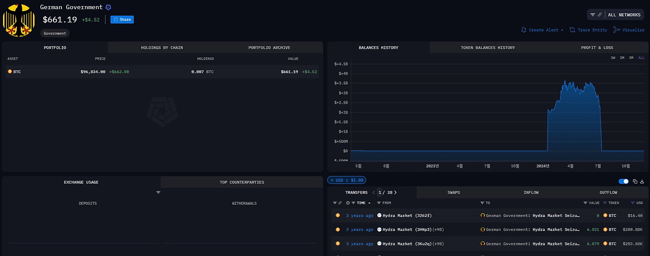 실제로 앞서 독일 정부가 불법 사이트에서 압수한 5만 개의 비트코인을(발행량의 0.25%) 2024년 7월에 모두 판매했을 때 암호화폐 시장에는 패닉셀(Panic Sell·공포에 따른 매도)이 발생했다. 그러자 비트코인 가격은 10% 가깝게 하락했으며 시장 심리를 나타내는 공포·탐욕 지수는 독일 매각 소식 이후 '극단적 공포' 단계인 25점을 기록했다. 이는 2023년 1월 이후 최저치였다.