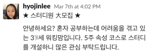 스터디는 매주 선정된 주제를 발제하여 스터디 하루 전 공유 및 토론을 하기로 했다.