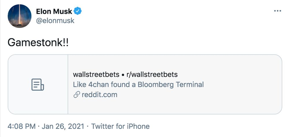 둘째로, 그들이 이번에 공매도를 건 게임스탑은 많은 사람들이 어릴 때부터 게임을 즐기기 위해 들르던 추억이 있는 곳이었다. 그런데 공매도 세력이 게임스탑을 희생량으로 삼아서 또다시 크게 한탕해 먹으려 한다는 소식이 레딧(미국의 온라인 커뮤니티)에 퍼지자, 이에 분노한 시민들이 금전적 손해를 감수하고서라도 게임스탑 주식을 구매해서 주가가 떨어지지 않도록 방어하기 시작한 것이다.