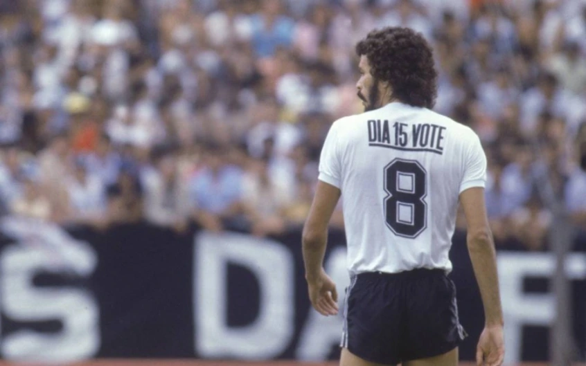 1984년에 직접선거를 촉구하는 전국민적 사회운동(Diretas já! - 지금 당장 직선제를!)이 벌어지자, 소크라테스는 이를 널리 알리기 위해 이 구호를 적은 머리띠를 매고 경기를 뛰기도 했다. 이윽고 독재 정권이 민주화를 위한 전국적인 총파업 운동에 굴복하고 대선 국민투표를 실시하기로 결정하자, 이번에는 투표일의 날짜를 유니폼에 써넣으며 전 국민의 투표 참여를 독려했다.