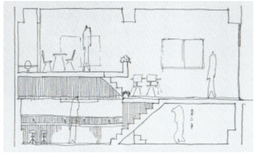 김수근에게 계단이란 “움직이는 몸이자 지각을 지닌 단위”인 사람이 다니는 길과 같다. “삶의 공간 안에서의 여러 활동을 연결시켜 주는 매개체”인 사람을 위한 유용성을 갖춘 공간인 것이다. 1958년 유락 레스토랑 스케치에서 이미 예견된 계단에 대한 김수근의 관심은 길처럼 계단도 원래 부여받은 목적 이외의 다른 무엇인가가 될 가능성을 지니고 있다는 관점을 제시하며 공간사옥 전체의 분위기와 공명한다.