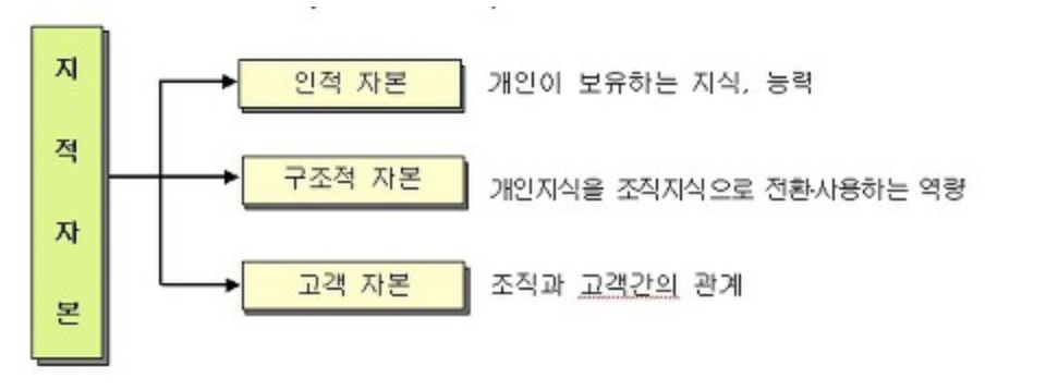 지식 자본 (Intellectual Capital) : 특허권, 상표권, 영업권, 기술과 같은 무형 자산을 비롯한 연구 개발 능력, 직원의 창의력과 노하우, 경영진의 경영 능력, 회사 이미지 등을 포괄하는 개념입니다. 이는 장부에 기재되지 않은 비재무적 자본으로 시장가치와 장부가치 간의 차이를 나타냅니다. 지식 자본은 인전 자본, 구조적 자본, 고객 자본으로 구분합니다.
