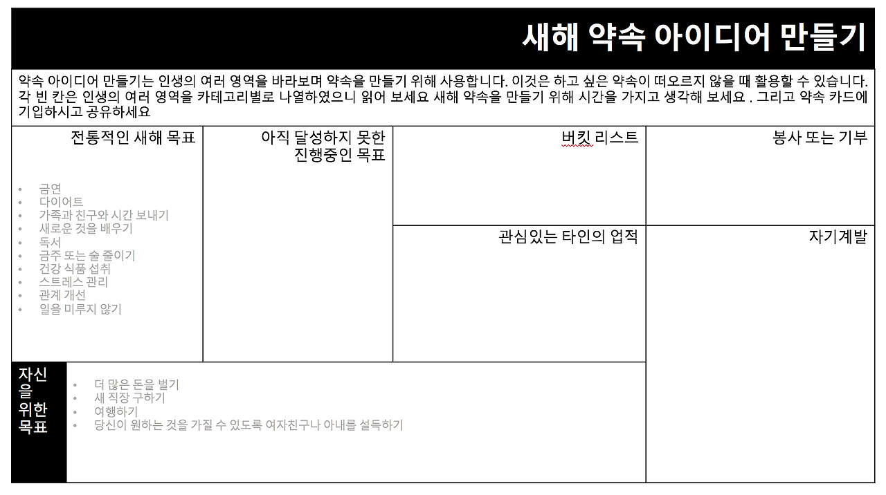 가족들과 새해 계획을 세우실 분들을 위해 영어 버전과 한글 버전을 공유합니다.