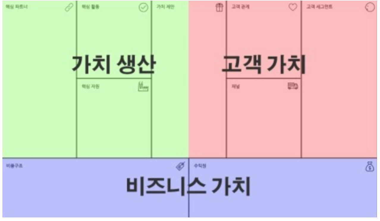 기업이나 사업을 시작하기 전에 주요 9 가지 요소를 살펴보면, 기업의 비즈니스 모델을 이해할 수 있습니다. 9개 영역은 크게 3 가지로 크게 나뉩니다.