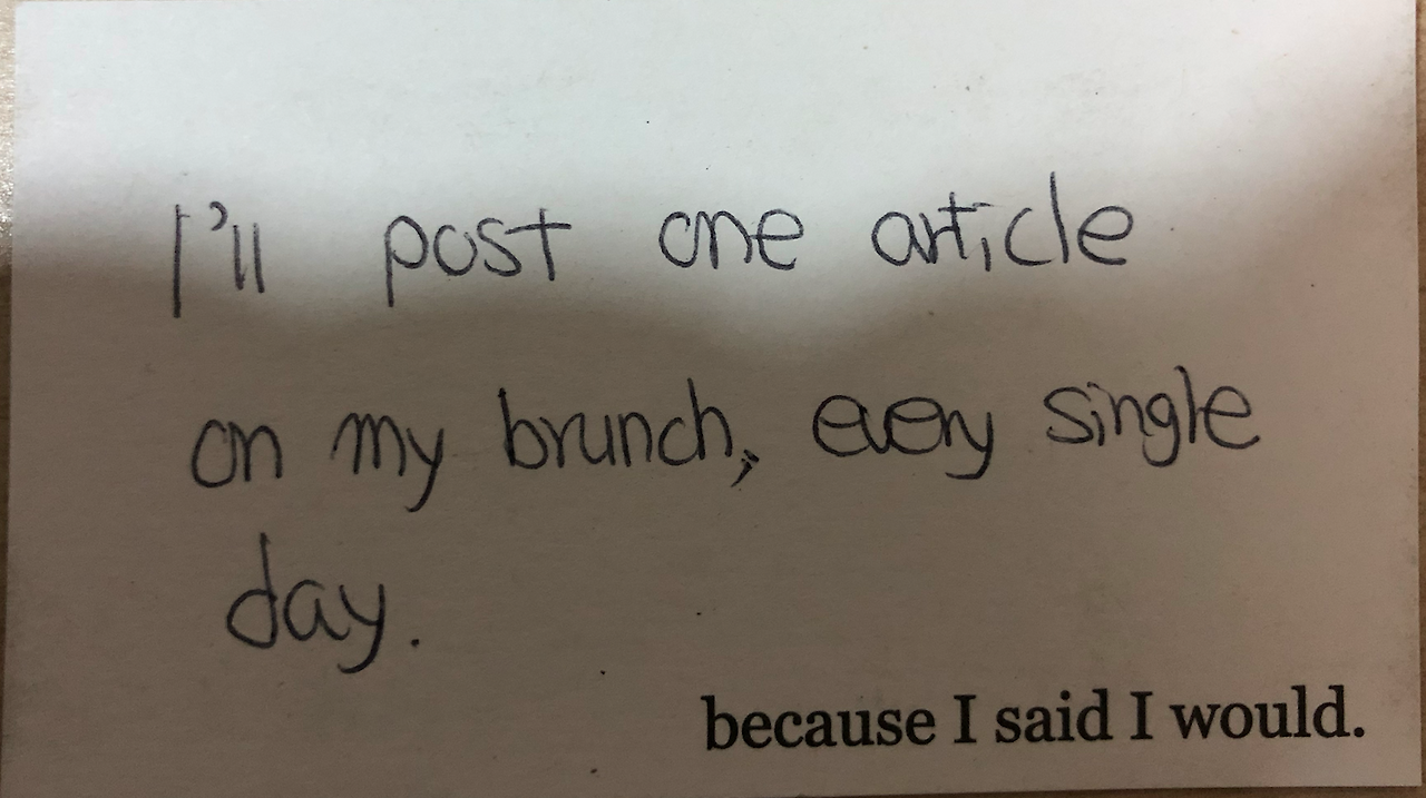 I'll post one article on my brunch every single day
