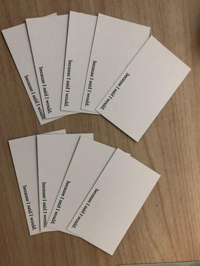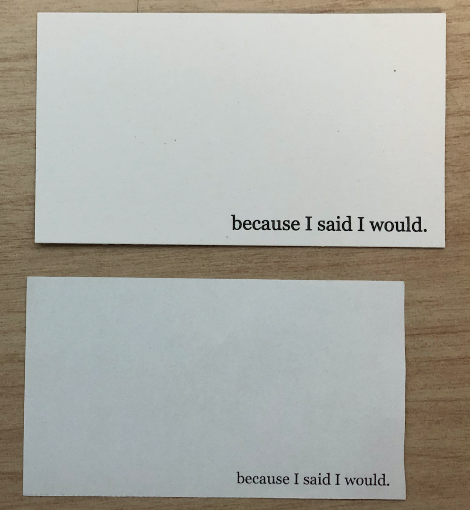 2018년 9월 15일 BecauseIsaidIwould.com 홈페이지에서 약속카드 10장을 신청했고, 어제 2018년 9월 28일 약속카드가 도착했습니다.