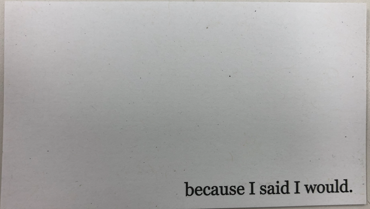 필자는 알렉스 쉰의 “내가 한다고 말했으니까 (Because I said I would"를 접한 후 약속 카드 (Promise Card)에 적여서 자주 들여다봅니다.