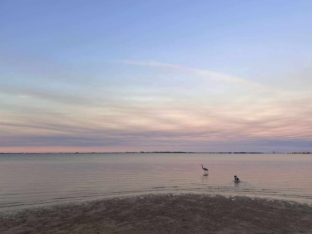 그래도 말이다. 거짓말 안 보태고 바다에서 10초 거리에 위치해 있던 플로리다 첫 번째 집은 지옥 같던 통근길을 제외하면 정말이지 다 좋았다. 매년 11월 초에서 3월 초까지는 썸머타임(Daylight saving time: 낮이 길어지는 여름동안 한 시간 일찍 하루를 시작하는 제도)이 적용되지 않으니 내가 쓸 수 있는 아침이 한 시간 늘어나는 셈이라서, 겨울 내내 나는 출근 전에 우리 집 멍뭉이랑 집 앞 바닷가를 걸었다. 비지시즌동안 회사 동료들과 다 같이 만보 걷기 캠페인도 참여하던 터라 하루 목표는 최소 10,000보였다. 좀 빠른 걸음으로 모래사장 위를 왔다 갔다 걸으면 한 시간에 3마일, 걸음수로는 약 6천보를 미리 찍을 수 있었다.
