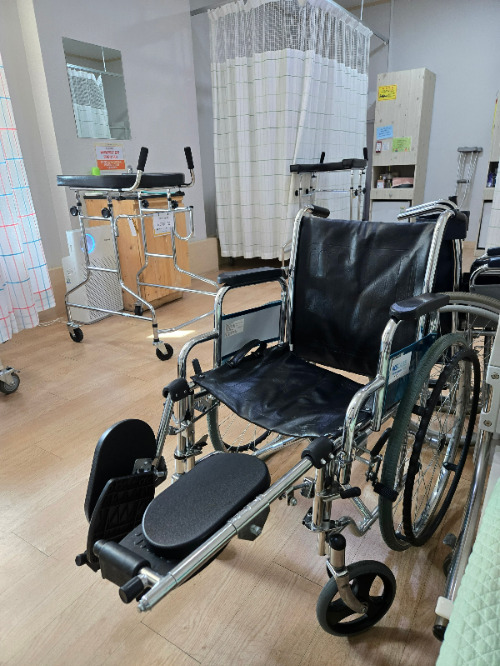 거상 휠체어와 하이 워커와 목발. 병원에서는 저 셋 중 하나를 사용한다.