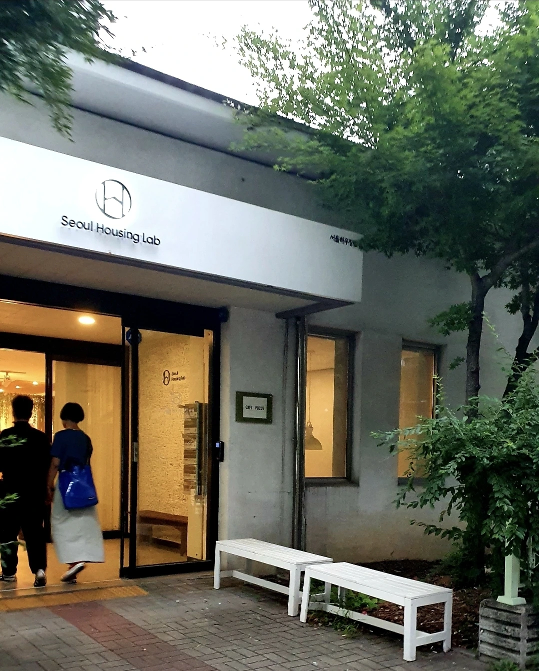 서울하우징랩은 지하가 있고, 카페와 도서관을 겸할 수 있는 공간들이 세련된 방식으로 구성된 복합 공간이다.