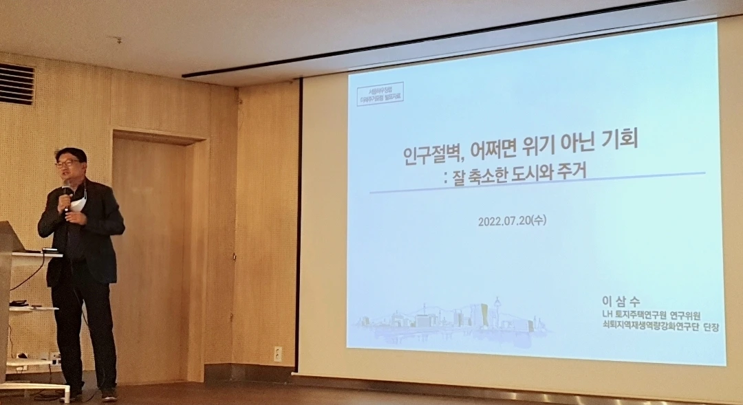 본격적인 포럼 내용을 살펴보자. 초청된 이삼수 박사는 대전에서 LH 토지주택연구원 연구위원을 지내고 있다. [축소도시], [도시재생과 젠트리피케이션], [한국의 도시화 그리고 재생], [도시의 가치를 높이는 지역 매니지먼트] 책의 저자이기도 하다. 젠트리피케이션이나 지대에 관해서는 관련 책을 읽었었기에 관심이 가는 부분이기도 했다. 그런데 축소도시는 2022년에 나온 신간이기도 해 궁금한 것들이 제법 많았다.