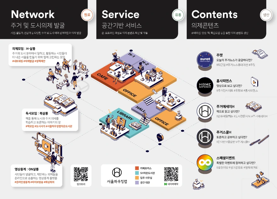 서울하우징랩에서는 주거 및 도시의제 발굴(의제모임: H-살롱, 독서모임: 북살롱, 영상중계: ON살롱), 공간기반 서비스(카페, 작은 도서관, 공간 대관 등), 의제콘텐츠(주랫, 홈사피엔스, 주거에세이H 등)을 진행한다고 한다. 포럼에 앞서 주최측에 대한 정보를 간단한 검색을 통해 기사 등으로 숙지하는 것이 좋다. 무작정 관심 분야라고 해서 포럼을 듣게 되면 예상하지 못한 강연이 될 수 있어 주의가 필요하다.