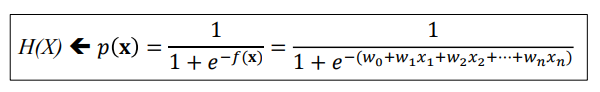 f(x) 값은 산술적으로 -무한대부터 무한대까지 값을 가질 수 있다. 그런데 우리가 확률을 생각한다면 확률은 0~1까지의 범위가 있다. 0과 1의 값으로 바꾸려고 f(x) 수식을 변형시킬 수 있다.
