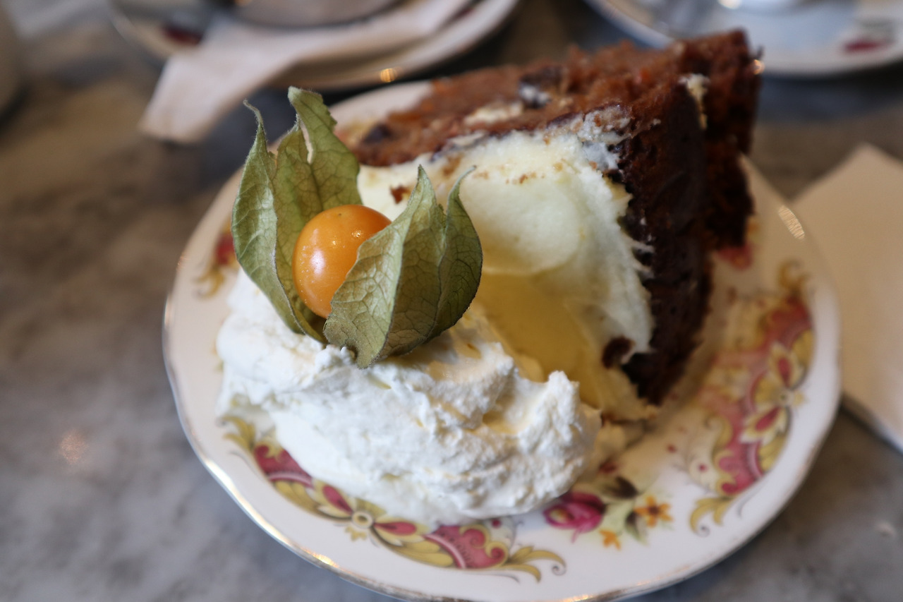 사실 나는 당근 케이크를 한 포크 이상 손을 댄 적이 없을 정도로 그 맛을 잘 모르는 사람 중 하나인데 저자를 믿고 당근케이크와 Irish tea를 시켰다. 내가 지금까지 먹어 본 당근 케이크 중 제일 맛있는 케이크였다. 차와 함께 먹으니 그 맛이 더욱 일품이었다.