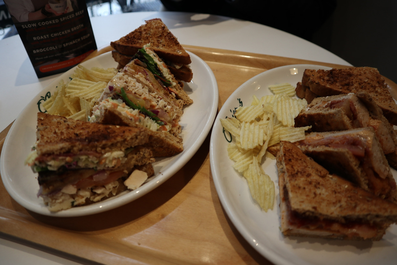 더블린 버스킹의 성지 그래프턴 스트리트를 지나, 세인트 스티븐 그린 공원을 산책하던 날은 유독 날이 흐리고 쌀쌀한 날이었다. 공원 근처에 아일랜드 로컬 브랜드 샌드위치 가게가 있는 것을 알게 되어 그곳에서 점심을 먹기로 했다. 한국에서의 양을 생각하고 1인 1 샌드위치에 몸을 녹일 수프까지 시켰는데 역시 또 양이 많았다.