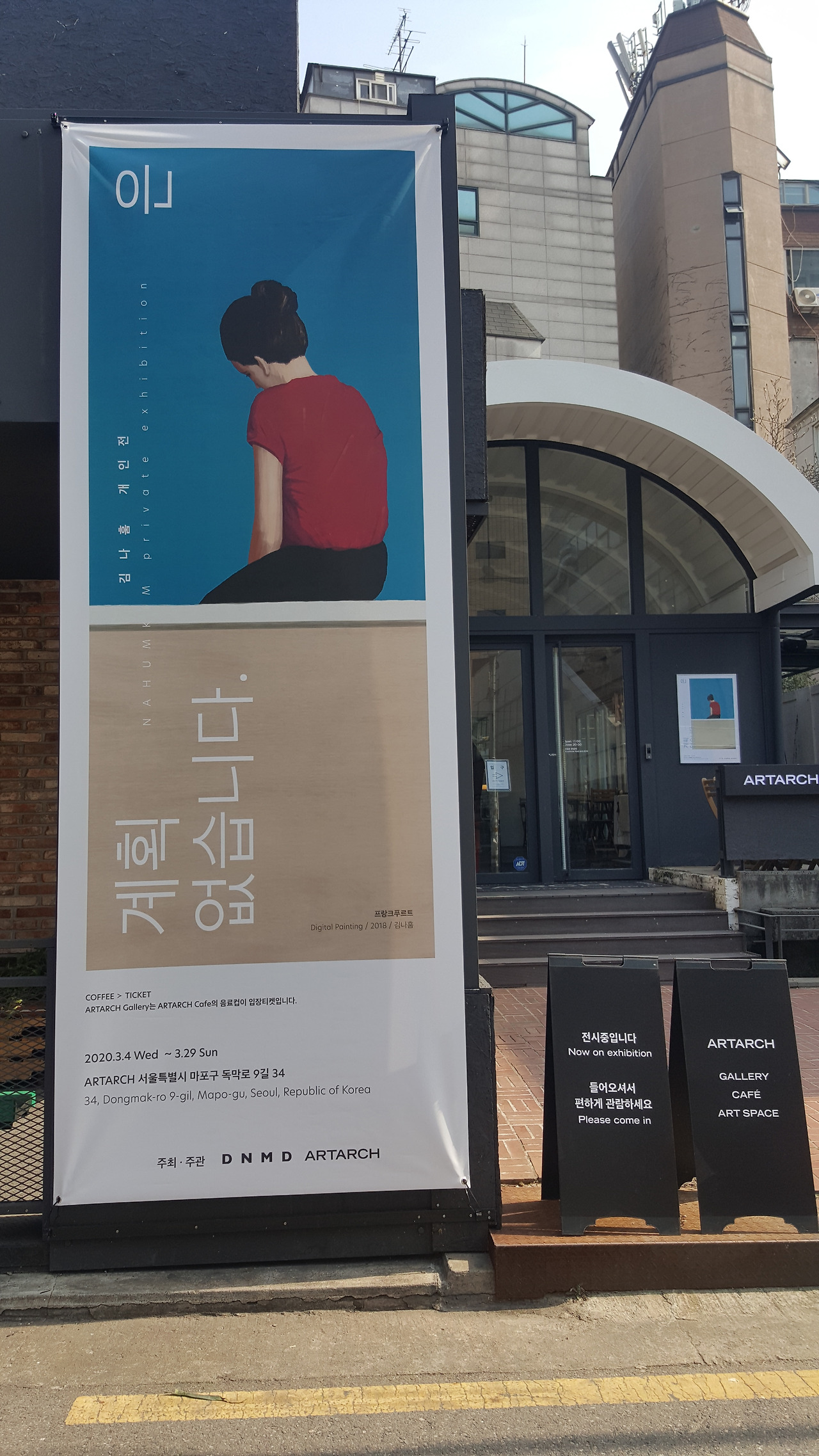 친구 아파트에 차를 대고 카페를 찾기 위해 지도를 켰다. 내 목적지는 그냥 카페가 아닌 내가 애정 하는 작가의 개인 전시가 열리는 곳이었다. 설레는 마음을 못 감추고 서두르는 바람에 약속시간보다 한 시간 반이나 일찍 도착했다. 같이 전시를 보기로 한 선배를 기다리며 전시장 주변을 맴돌았다.