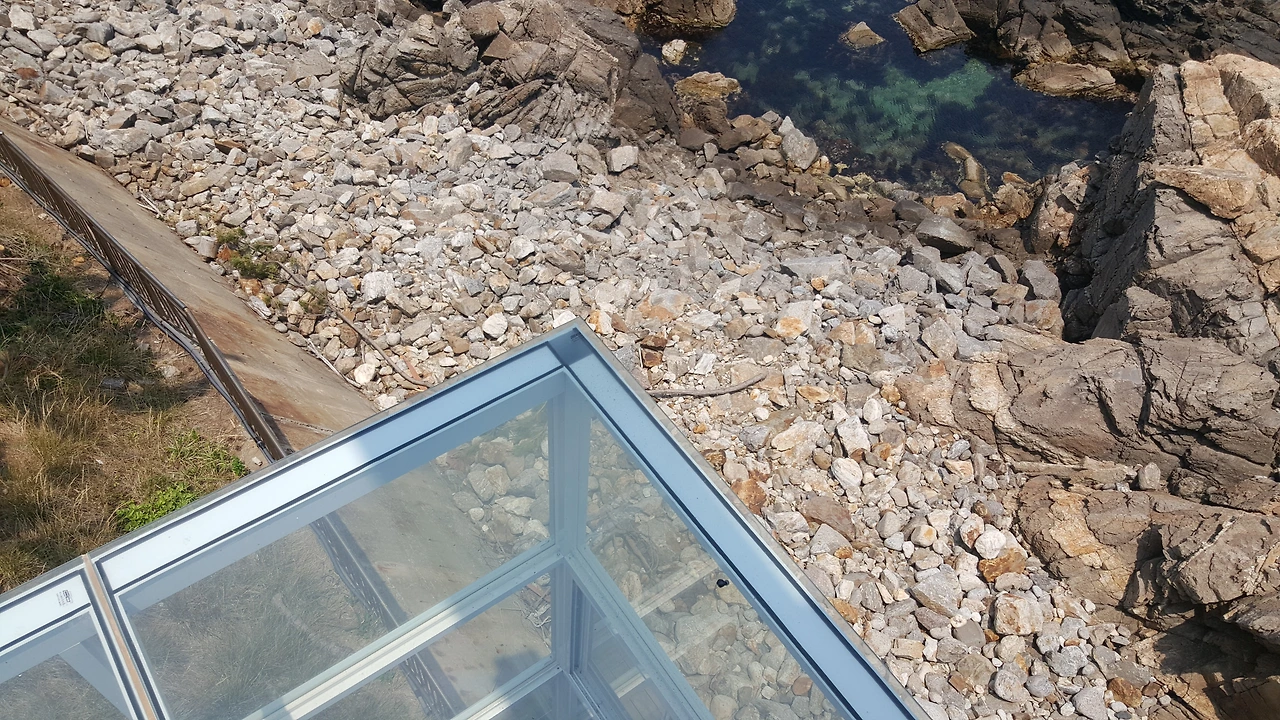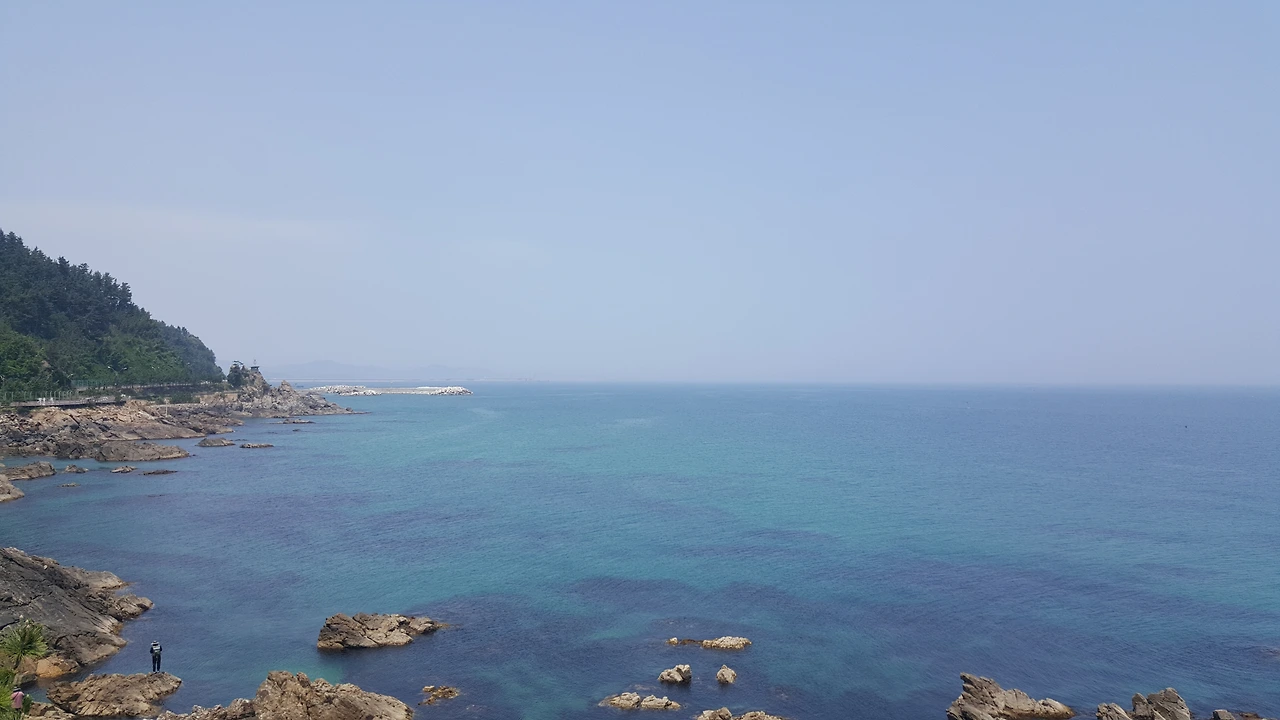 다음날 집으로 돌아오기 전, 차로 지나가기만 한 새천년해안도로를 다시 찾았다. 여기에 차를 대야지 하고 봐 뒀던 곳은 전체 도로의 중간쯤에 있었던 조각공원이었다. 시원하게 불어오는 바다바람, 거칠 것 없이 탁 트인 풍경. 그야말로 탁월한 위치 선정이었다. 그런데 그곳은 평소 야외공연이 있는 장소였는지 내가 도착했을 때 밴드 연주자분들이 현철의 사랑은 나비인가봐로 합을 맞추고 있었다. 날카로운 가사 때문에 개인적으로 좋아하는 노래였지만 그날의 풍경 그날의 내 정서와는 어울리지 않았기에 바다가 보이는 모퉁이에 서서 무선 이어폰을 꺼내 귀에 꽂았다. 그런데 바로 그때, 왼쪽 이어폰이 귀에서 빠져나가더니 애매한 위치에 굴러 떨어졌다. (귓구멍이 비정상적인 건지) 평소에도 잘 빠져서 결국 여기서 이렇게 잃어버리는구나 체념하다 자세히 보니 버젓이 보이지만 손은 닿을 수 없는 곳에 놓여있었다. 차라리 바다 쪽으로 떨어져 버렸다면 깔끔하게 뒤돌아서겠는데 잘만하면 주울 수 있지 않을까 하는 위치였다. 그렇다고 직접 내려서 줍자니 잘못했다가는 돌 위로 추락할 것 같았고, 무엇보다 이어폰이 떨어진 바닥이 내 무게를 감당할 수 있을 것 같지 않았다.