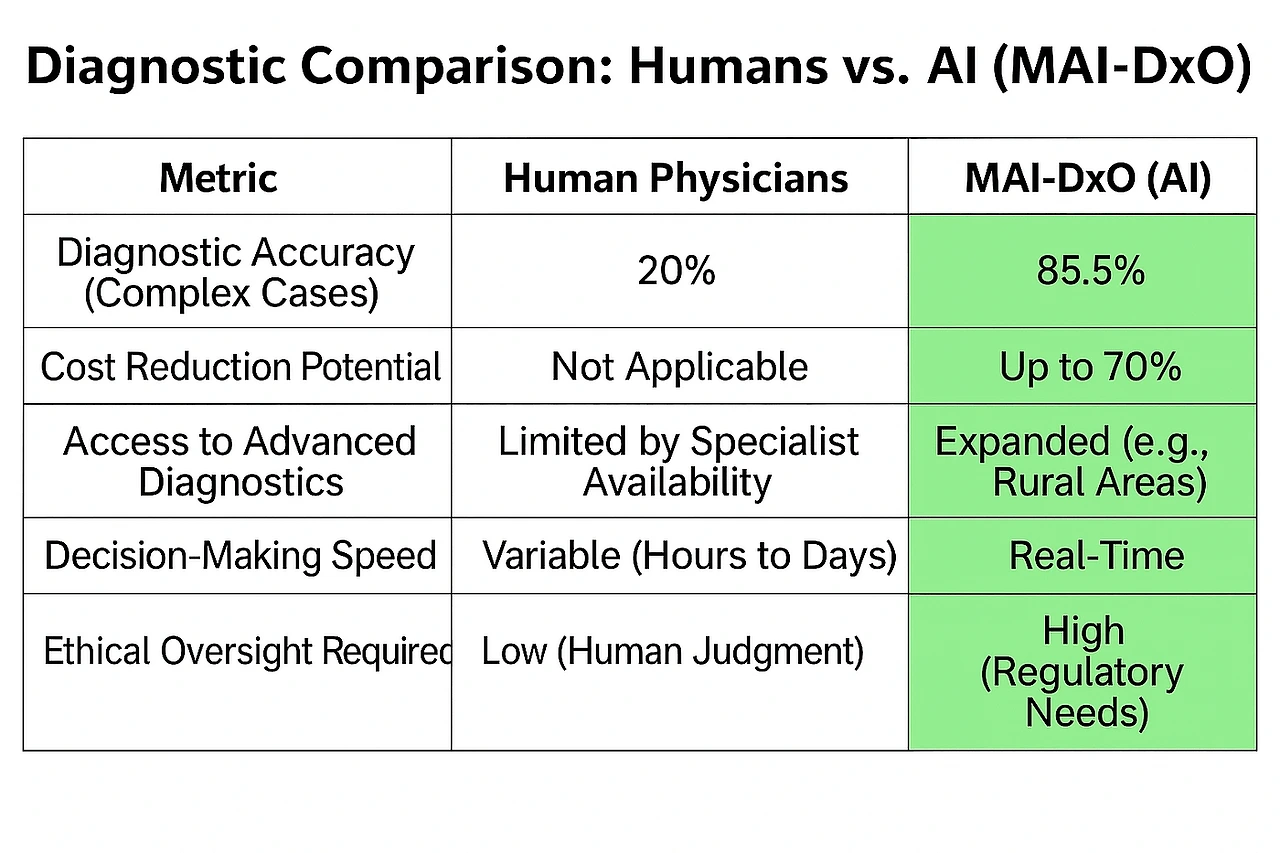 하지만 모든 혁신에는 그늘이 있다. 알고리즘 편향은 기존 의료 불평등을 재생산할 수 있고, 과도한 AI 의존은 임상 기술의 저하를 초래할 수 있다. 환자들은 여전히 ‘설명할 수 없는 AI’에 대한 불신과, 인간성과 연결이 줄어들 수 있다는 우려를 갖고 있다. MAI-DxO의 미래가 밝기 위해서는, 투명한 설계와 설명 가능한 AI, 강력한 데이터 보호, 그리고 무엇보다 인간 중심적 설계 원칙이 필수적이다. AI가 판단을 ‘대신하는’ 것이 아니라, 인간의 판단을 ‘확장하는’ 도구로 자리매김해야 한다.