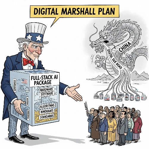 글로벌 전략에서 가장 주목할 점은 “AI 동맹 블록”의 개념이다. 이는 단순한 기술 수출을 넘어, 미국 주도의 기술 생태계 확산 전략이다. 트럼프의 계획은 동맹국에 “풀스택 AI 패키지”를 제공하겠다고 명시한다. 하드웨어, 소프트웨어, 알고리즘, 심지어 규범과 표준까지 포함된 통합 수출 전략은 일종의 디지털 ‘마셜 플랜’에 가깝다. 중국의 ‘디지털 실크로드’에 대응하는 이 전략은 AI를 외교의 무기로 전환시킨다. 미국은 이제 기술을 무역 상품이 아닌, 지정학적 권력의 지렛대로 사용하려는 것이다.