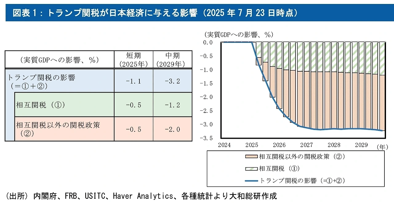 2. 대와총연 “GDP -1.2% 전망” – [dir.co.jp](https://www.dir.co.jp/report/research/economics/japan/20250723_025225.html)