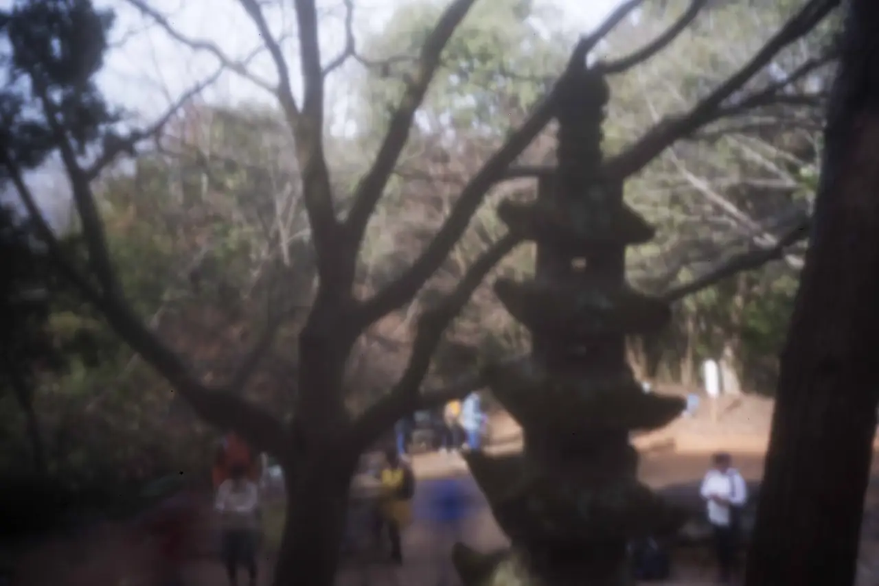 걷기 시작하고 얼마 지나지 않아 도난잔고분이 나오는데 쉬기에는 다소 이릅니다. 그냥 지나치기도 아쉬워 고분과 탑 주위를 둘러보고 다시 길을 따라 경사를 올라갑니다. 나무 그늘 깊은 산길에서 쉬는 중에 일행이 주는 커피를 얻어 마시고 나는 가져간 사탕을 나누어줍니다. 올레길에서는 일터에서 쉽게 마시던 커피가 귀한 마실거리가 되고 평소에 잘 먹지 않던 사탕이 오히려 흔한 먹을거리로 바뀝니다. 따뜻한 커피에 대한 보답으로 사탕을 건네기에는 좀 부실하지만 길을 걷는 동료들은 개의치 않습니다.