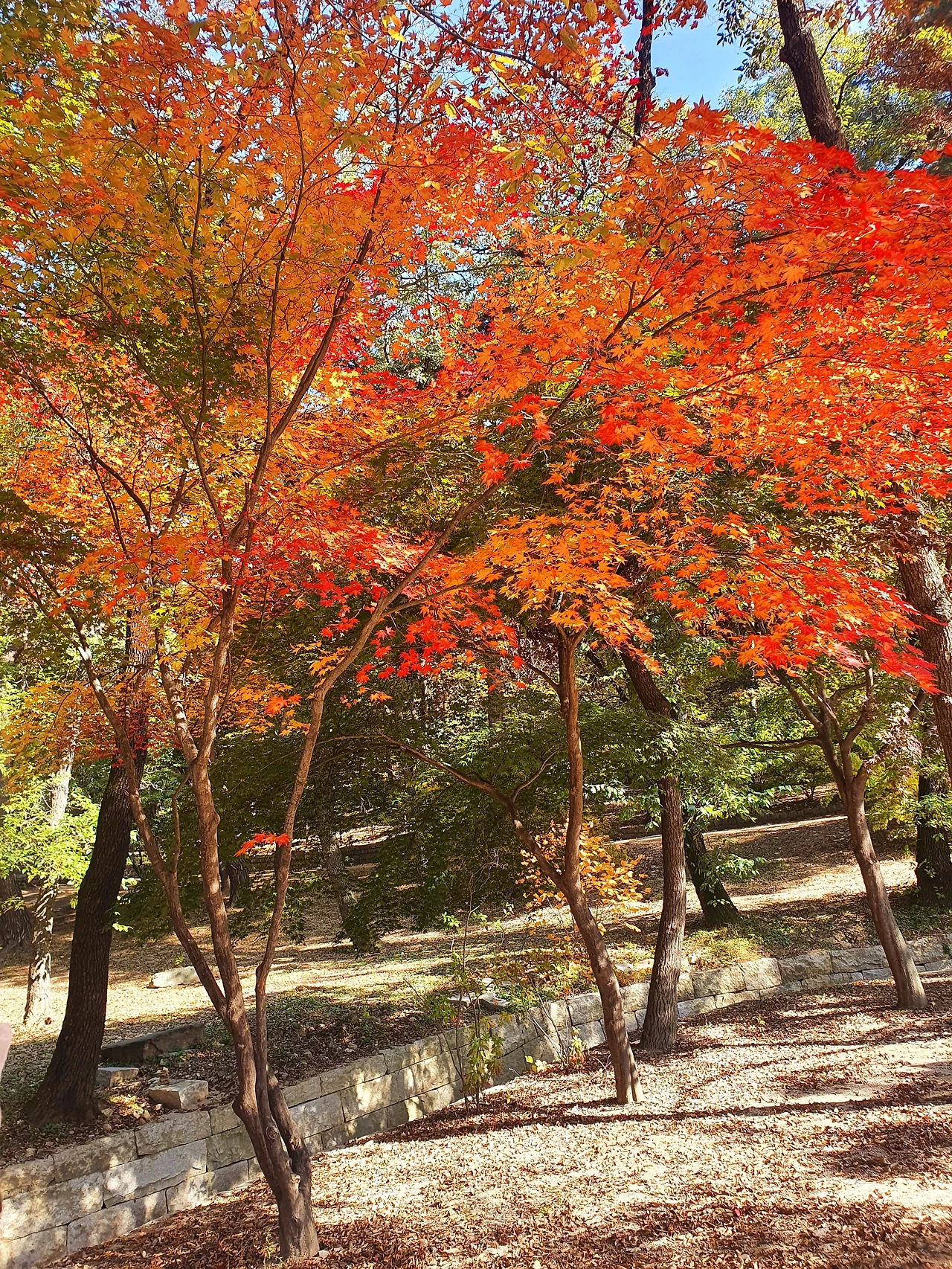 그런데 유독 푸른 잎사귀로 뒤덮인 나무에 시선이 멈췄다. 이 나무는 오르지 끝자락에만 붉게 물들어있었다. 마치 상위 1프로마냥