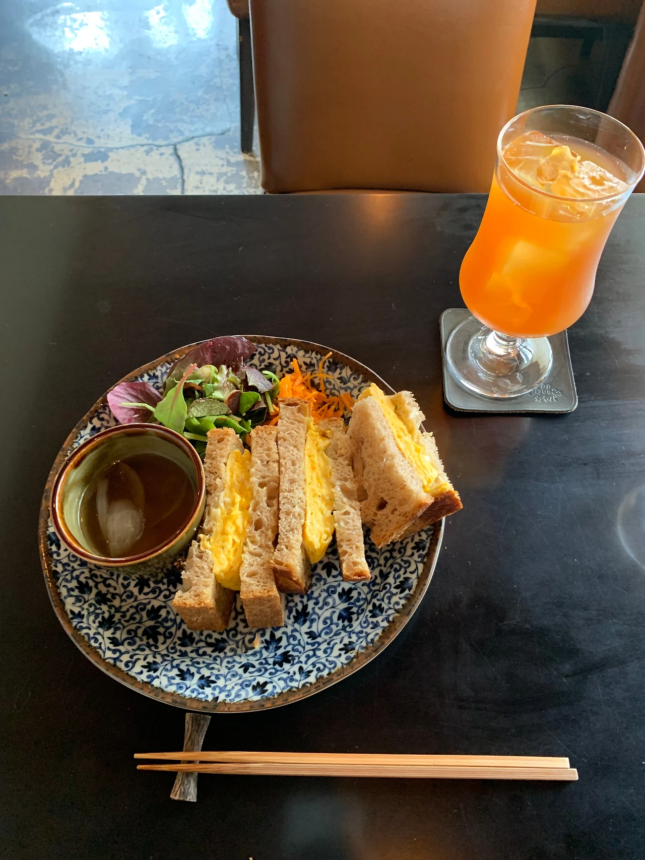 포슬포슬한 에그산도를 앞에 두고 문이 열릴 때마다 그녀가 들어오는지를 확인했다. 바로 다음 타임에 예약했으니, 오면 합석을 제안해 봐야지. 혼자 왔는지, 오늘은 어딜 여행할 계획인지 대화하면 재밌겠다. 아, 나 너무 오지라퍼인가. 나는 혹시나 하는 마음에 직원에게 혹시 그녀가 오면 자리를 합석해도 되는지 물었다. 안타깝게도 불가능하다는 답변을 받았지만.