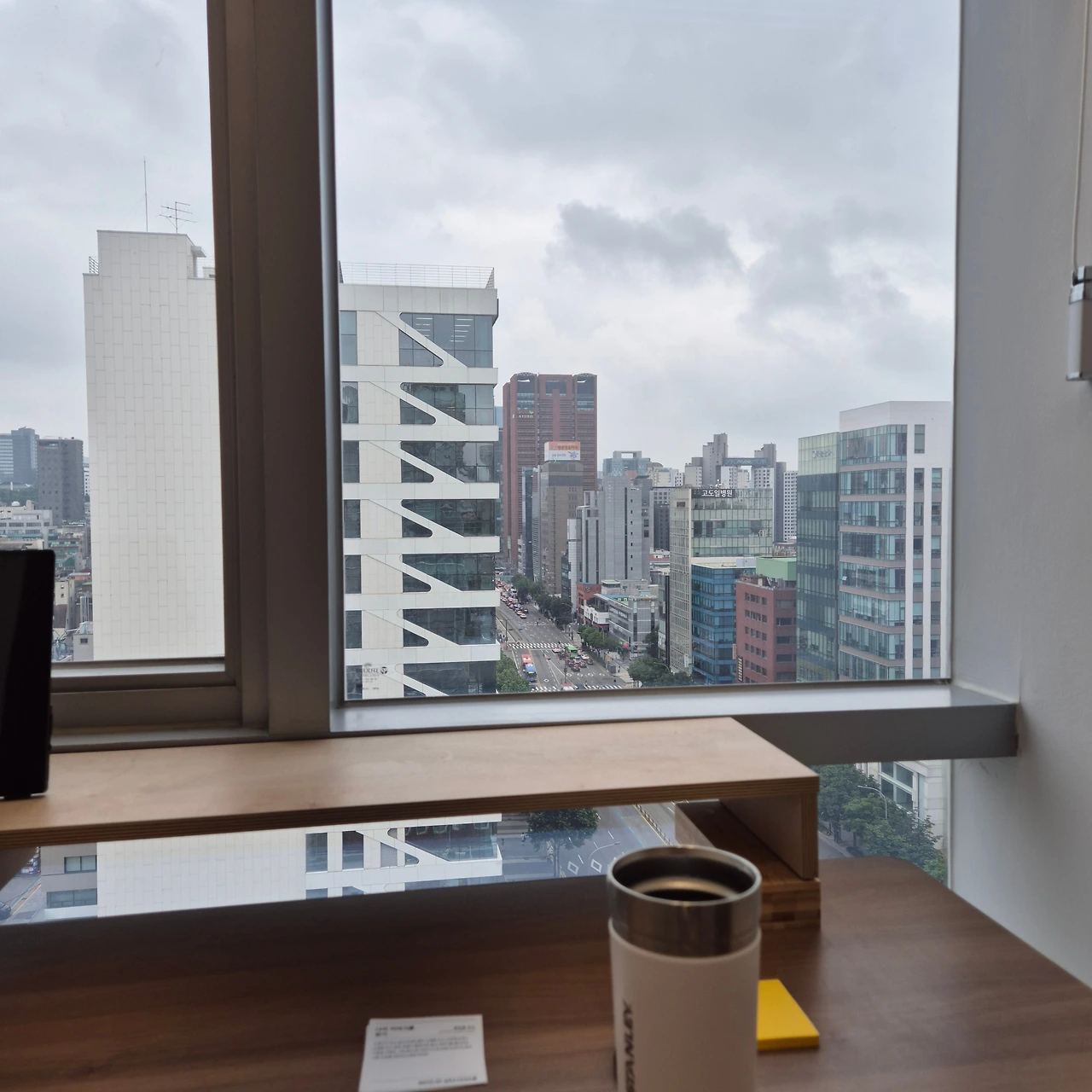 이곳은 처음 야경과 시티뷰가 너무 좋아서 계약했던 사무실이었는데, 6개월쯤 쓰고 보니 어느새 무뎌져서 이후로는 바깥 풍경보다는 커다란 모니터만 바라보며 지냈던 것 같다.