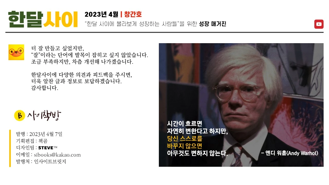 『한달:사이』매일 성장하는 사람들을 위한 매거진 #2