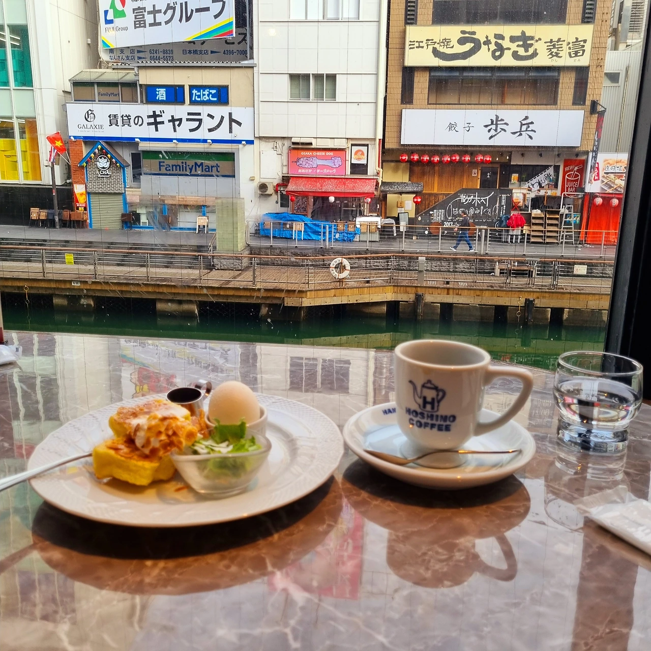 숙소가 미나미지역 긴테쓰닛폰바시역 근처라 모닝커피를 마시러 도톤보리에 있는 호시노 커피에 왔습니다.