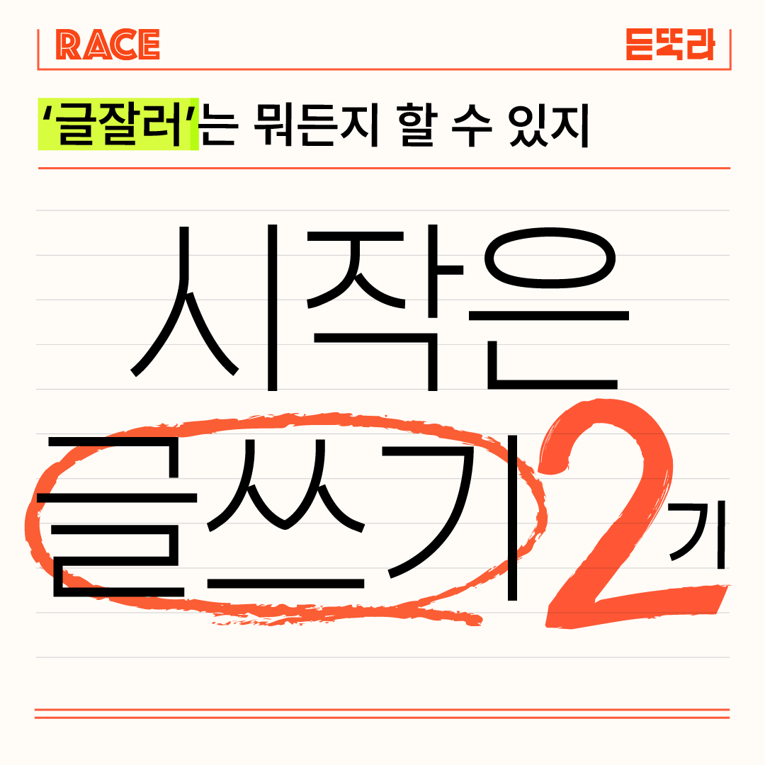 많은 사랑과 관심 덕에 돌아온 '시작은 글쓰기' RACE 2기도 벌써 종착점을 앞두고 있어요. 1기에 못지 않게 2기에서도 레이서들의 열띤 참여가 빛났는데요, 특히 글쓰기 미션에서 서로의 글에 응원의 댓글과 좋아요를 가득 남기는 훈훈한 분위기가 인상적이었답니다. 단순히 글을 올리는 데에 그치지 않고 다른 레이서의 글에 영감을 얻고 힐링하며 마음까지 따뜻해지는 레이스였습니다!