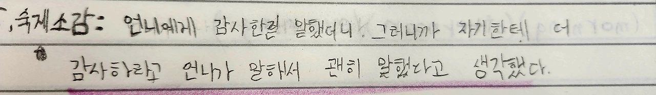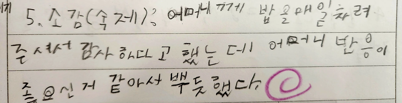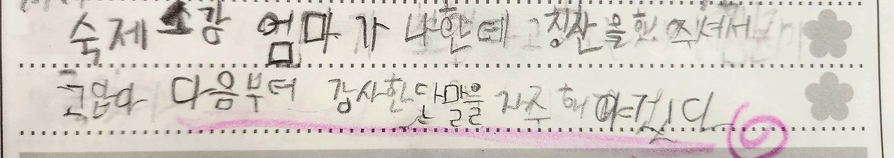어떤 말을 했을 때 어머니께서 좋아하셨는지 구체적으로 썼어요. 그리고 뿌듯하다는 표현이 스스로에게 하는 칭찬의 말 같아요.