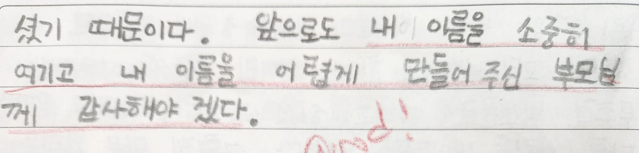 내 이름을 소중히 여기고 내 이름을 어렵게 만들어 주신 부모님께 감사해야겠다.
