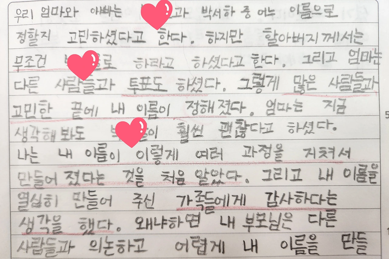 이름의 뜻과 이름을 지은 과정을 듣고 온 아이들은 어떤 생각을?