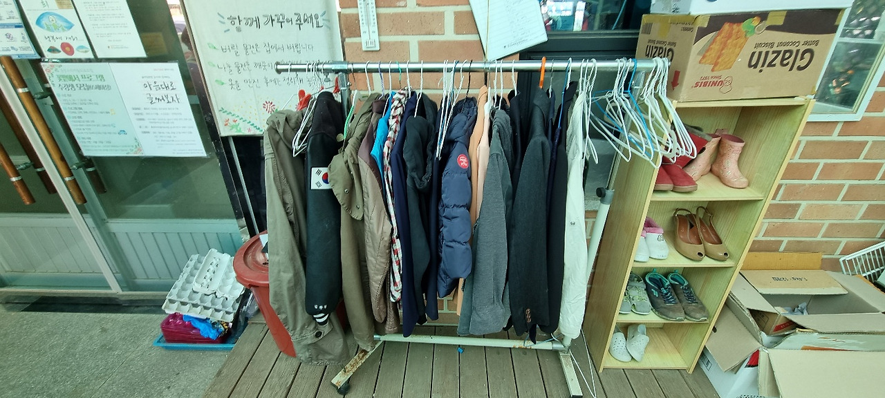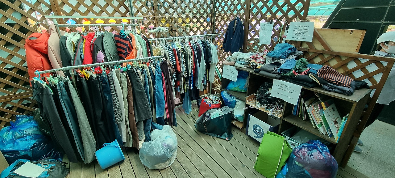 청바지가 나눔된 공간을 지나 뒤로 돌아들어가면 재활용 매장이 나온다.