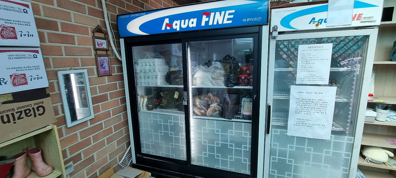 그리고 안쪽에 업소용 냉장고 두개에 다양한 음식물들이 보관되어 있었다. 자물쇠가 채워져 있는 것으로 보아 공유가 아닌 개인의 음식물들을 보관하는 공동의 창고로 보였다. 아마도 공동 구매한 식재료로 다함께 만든 음식물들을 각자 먹을만큼 소분해서 보관하고 있는 공간으로 보였다.