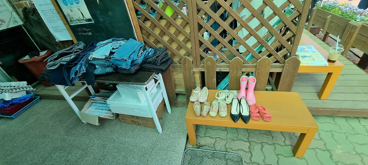 아이들의 장화나 운동화, 샌들같은 신발류의 나눔도 제법 있었다. 도시와 농촌의 구분을 떠나 대부분의 가정은 엄마가 아이들의 옷가지를 챙긴다. 도시에서는 온라인 배송이 잘 되어 있고 여차하면 쇼핑하러 가면 되지만 그런 인프라가 갖춰지지 않은 환경이라면 쑥쑥 자라는 아이들에게 제때에 맞는 옷가지나 신발을 못 챙겨 줄 확률이 클 수도 있을것 같은 생각이 들었다. 그렇기 때문에 아이들의 옷가지나 신발 나눔은 이런 공동체가 많이 활성화 되어 있음을 보여주는 것 같았다.