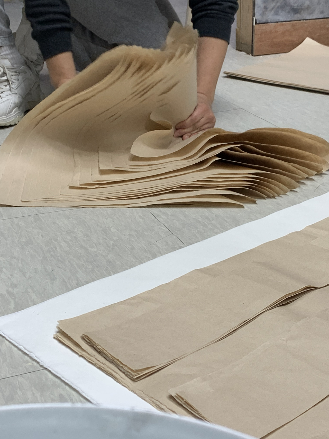 오늘은 황초배지 40장을 8장(길게), 15장(절반), 11장(온장)으로 나누어 가졌고, 운용지 4장을 반으로 접어 잘랐나(?) 그리고 부직포 2장 분량의 부직포를 제일 먼저 발랐는데, 풀에 칼집을 내서 벽에 바로 네모로 발랐다. 현장에서는 목공본드를 사용해 만드는 일조의 ‘벽체’같은 것으로 이 위에 운용지를 붙이는 건 알겠는데 과정이 이어지지는 않는다. 부직포는 물 섞지 않은 풀로 붙이며 다찌솔로 칠한다. 사실상 오늘의 일은 황초배지(심한 욕)를 다룬 것으로 일당 천장용 힘받이(이건 천장 몰딩에 딱 붙여서 이어 바르는 것 10, 풀칠을 3개를 얹어 놓고 중앙에서 오른쪽 왼쪽 오가며 바른 뒤 천장 가까이에 아뭏게나 붙여둔다. 힘받이는 그래도 끄트머리 각만 잘 맞추고, 위에서 작업하기 좋게 높은 곳에 풀칠한 황초배지를 발라두면 좋다.