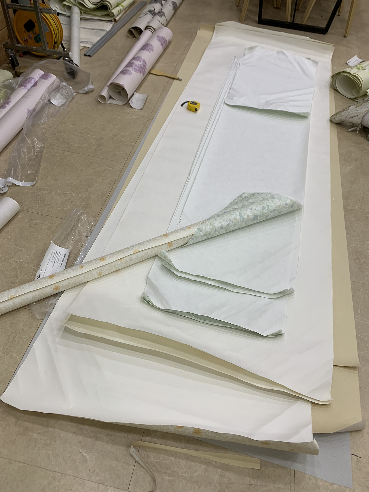 1주일을 가르친 보람이 없다는 뜻이다. 지식이 축적되지 않고 산발하고 있다. 아마 다들 같은 문제를 경험하는 것일까? 실크는 2,500㎜ 두 개. 장폭은 2,500㎜, 2,700㎜. 소폭은 2,000㎜이 다섯개, 2,400㎜이 세 개? (봐봐라 오늘 배운 것도 까먹는다. 3장 맞다), 800㎜ 1장(두 개 나눠 문으로 한다던데 못 해봄) 그리고 그 전에 하는 초배는 40장을 8장 힘받이, 밀착초배 11장 100㎜,100㎜,100㎜,50㎜,50㎜,로 자르기, 도수초배 하고. 공간초배용 15장 1/2해서 삼각형 만들기. 운용지 4장 반 접어서 칼등만큼 자르기. 초배 작업 재단 순서 기억하기, 초배 작업 시공 순서 기억하기. 그리고 기억하기. 그리고 기억하기.