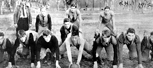 고교 미식 축구부 활동 시절의 유일한 박사, 사진 가운데 공을 쥔 사람