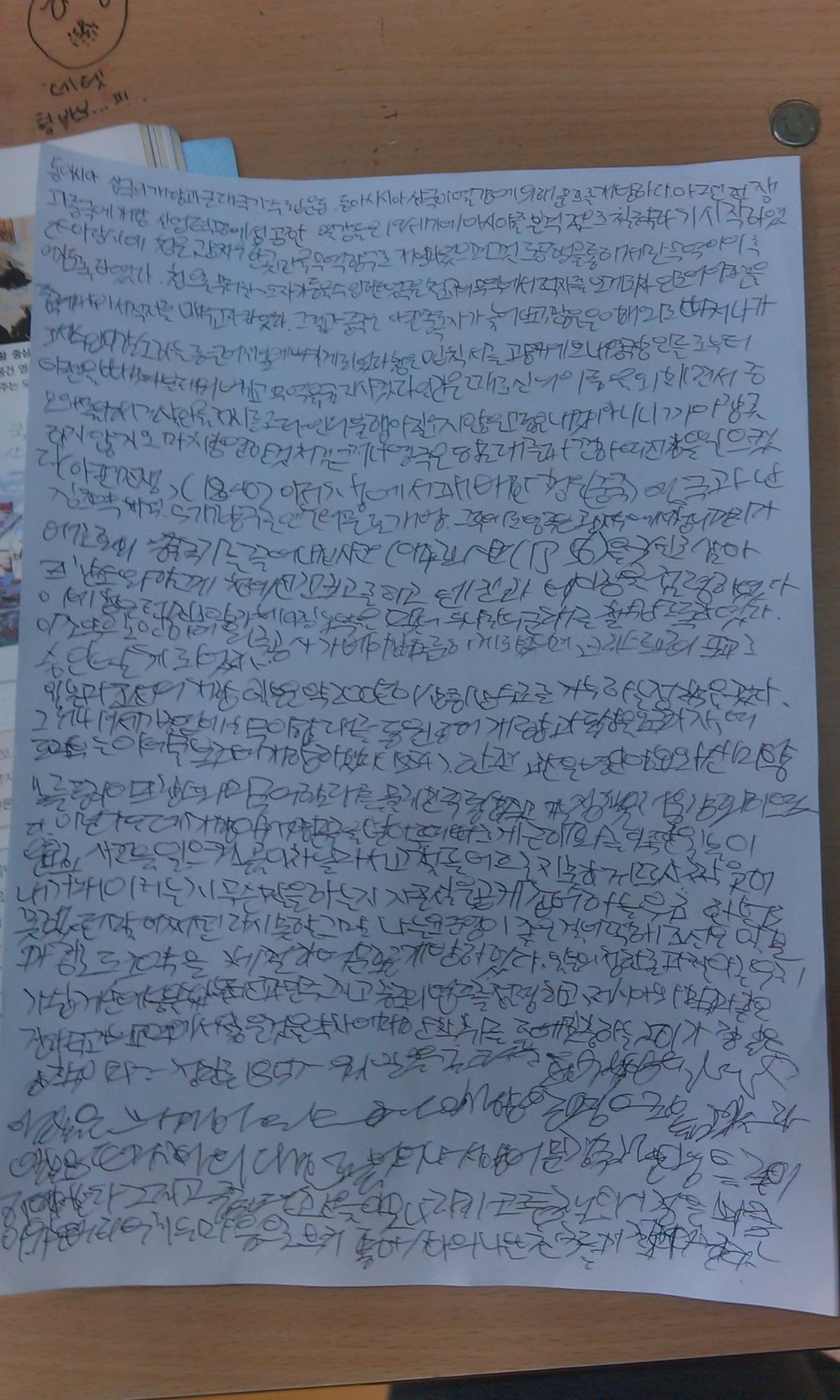 잠시 아기들이 모국어를 깨우치는 과정을 설명하기 위하여 예전에 한국의 영어 수업 방식을 살펴보겠습니다. 우리는 예전에 영어 수업에서 ABCD 알파벳을 배우고, 'Hi, How are you?', 'Fine thank you, and you?'를 읽고 앵무새처럼 따라 하며, 심지어 예전에는 '깜지'라는 형태의 일본식 정신승리적 방법을 차용하여 공부하기도 하였습니다. 잠시 자료 사진 보시겠습니다.